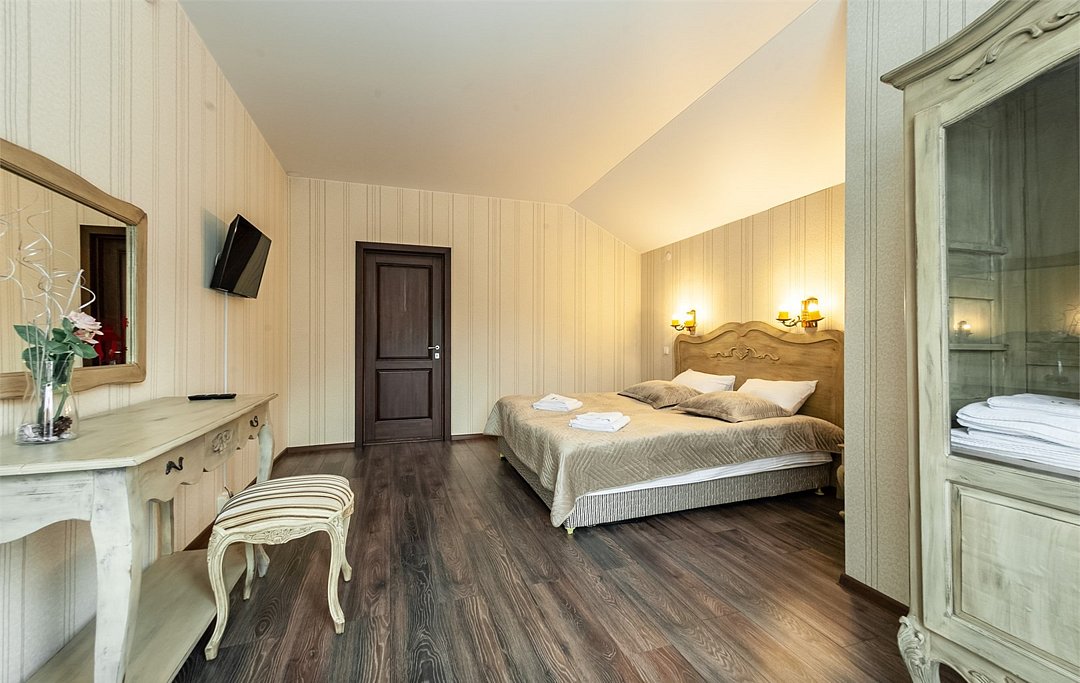 Возможно размещение на двуспальной или на двух односпальных кроватях по предварительной заявке.