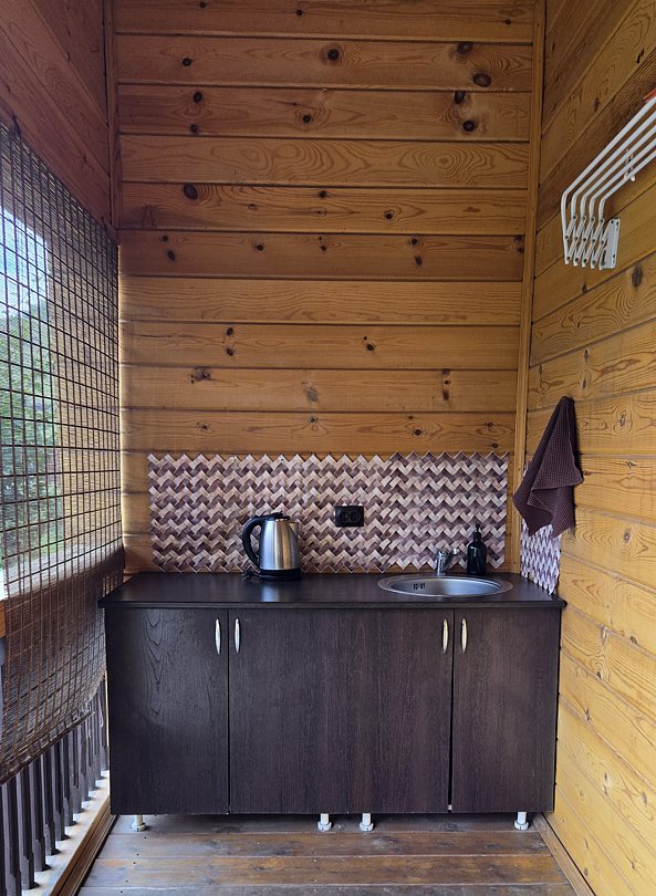 Уютный домик для отпуска, оснащённый всем необходимым для комфортного проживания. Всего на территории базы отдыха 4 таких домика.
