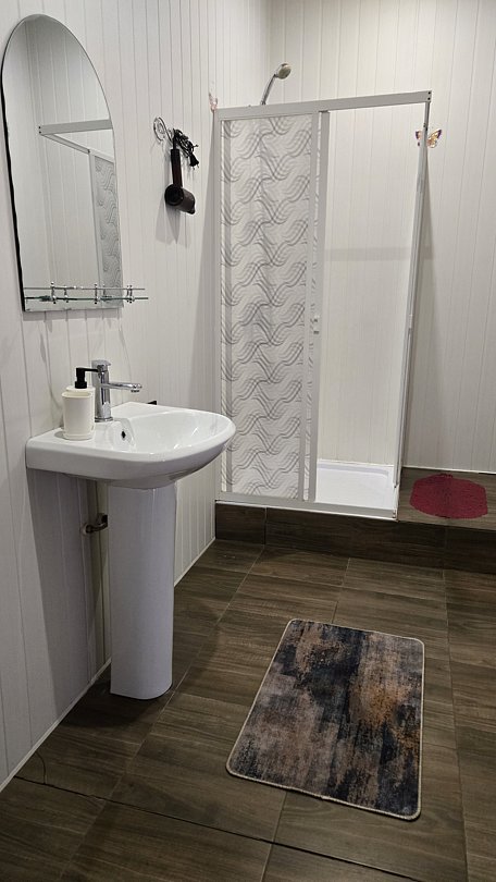 На территории базы вас будут ждать 4 уютных отдельно стоящих домика и 2 домика под одной крышей. Каждый дом оснащен просторной комнатой с двуспальной кроватью и диваном, ванной комнатой с душем, а также открытой верандой с мини-кухней. В номере имеются телевизор, чайник, микроволновая печь, плита и прочие удобства.
