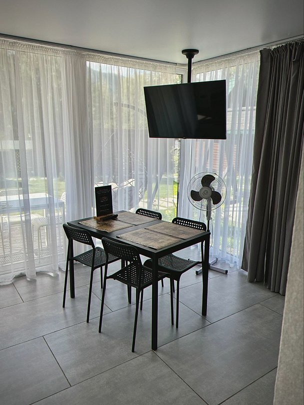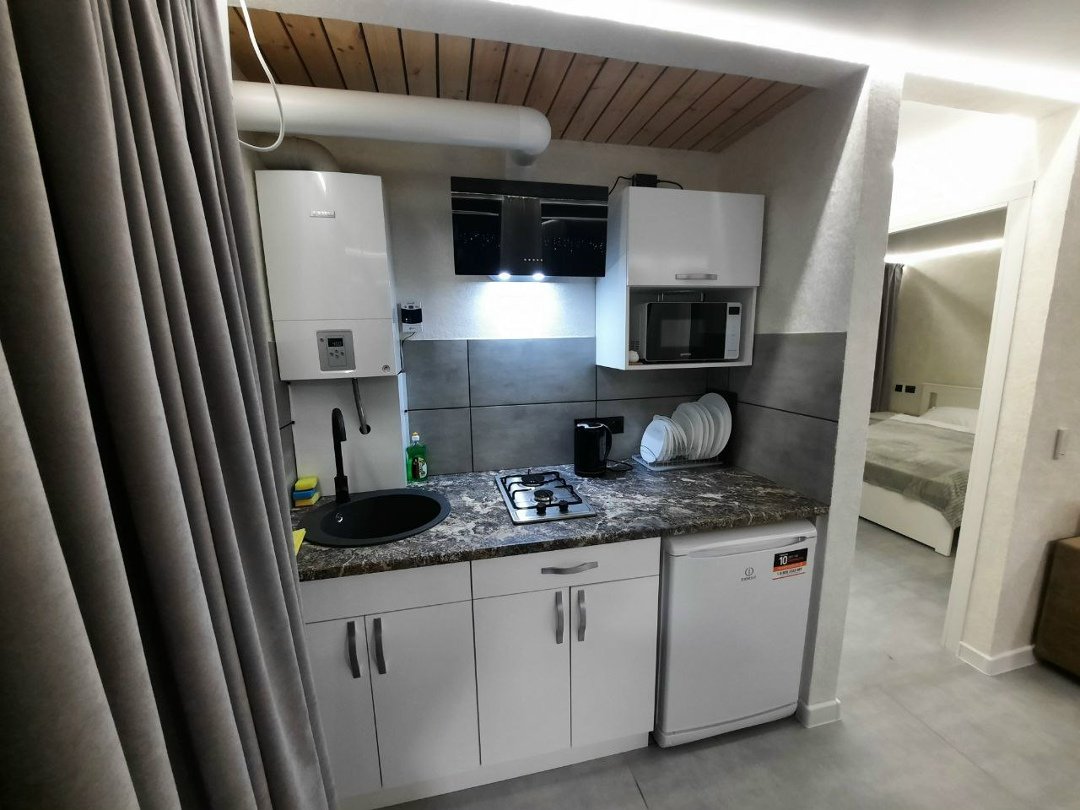 В распоряжении гостей система автоматизации Smart House, стиль хайтек, кухня с необходимыми приспособлениями, чайником, холодильником и микроволновой печью.