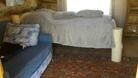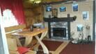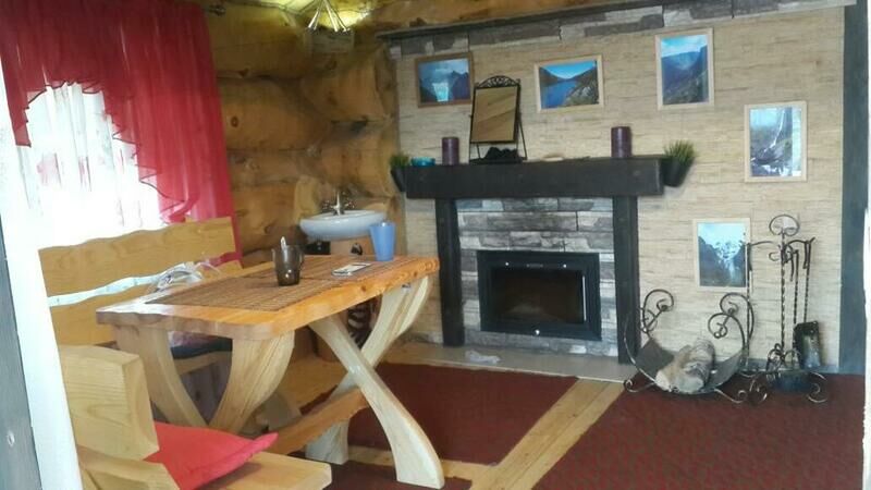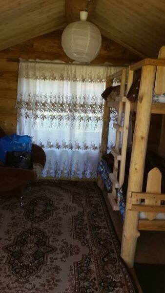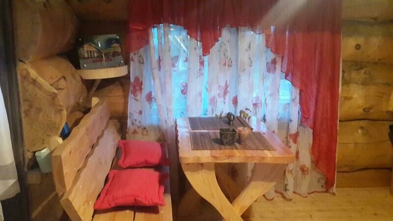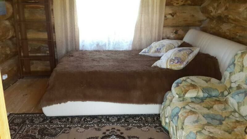 В доме двуспальная кровать и раскладной диван (либо двухярусная полутораспальная кровать и раскладной диван), стол, стулья, полочки, вешалка. Обогревается инфракрасным обогревателем.