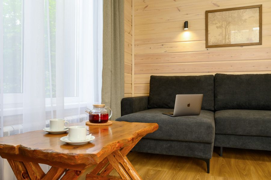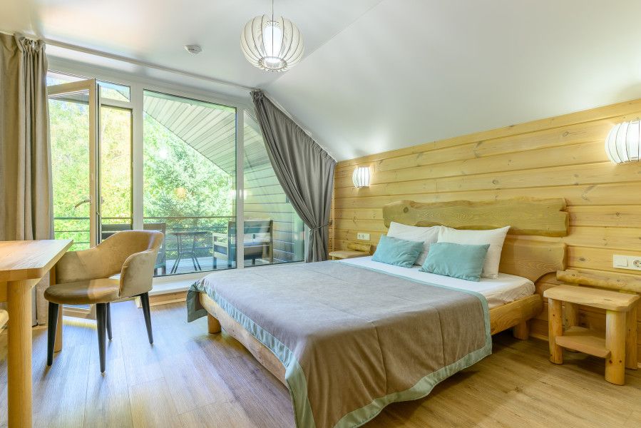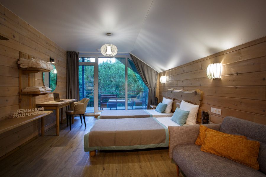 Отдельно стоящие двухкомнатные шале с верандой и мебелью ручной работы