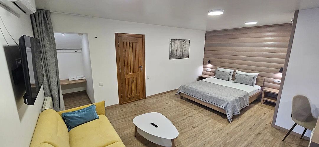 Номер стандарт улучшенный, для современного и комфортного проживания. Кондиционер, WC, душевая кабина, TV с плоским экраном, WI-FI, чайник и набор посуды для чаепития, балкон.