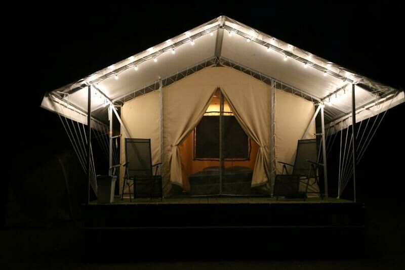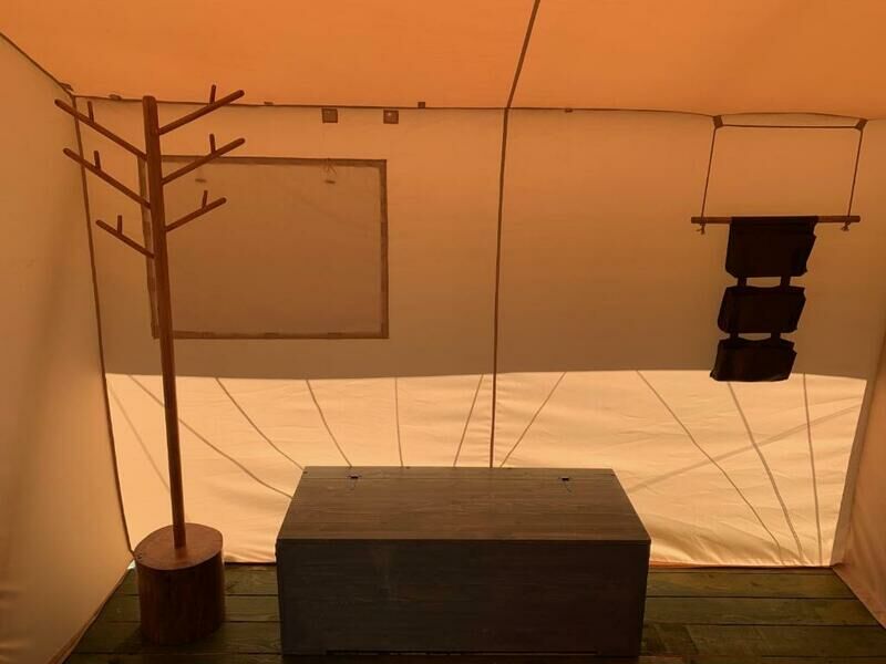 Туристический лагерь занимает небольшую территорию, окруженную дикой природой. Гости могут разместиться в двух- и трехместных люкс-шатрах, рассчитанных в общей сложности на 26 человек. В каждом шатре есть кровать с удобными матрасами и простынями с электроподогревом, ларь для вещей и зеркало, имеются розетки, однако, электричество подается в вечерние часы, а напряжение не рассчитано на энергоемкие приборы. Каждый шатер оснащен своим индивидуальным биотуалетом, внутри установлены раковина и душ с горячей водой.