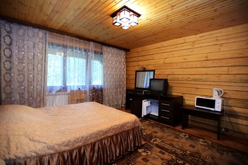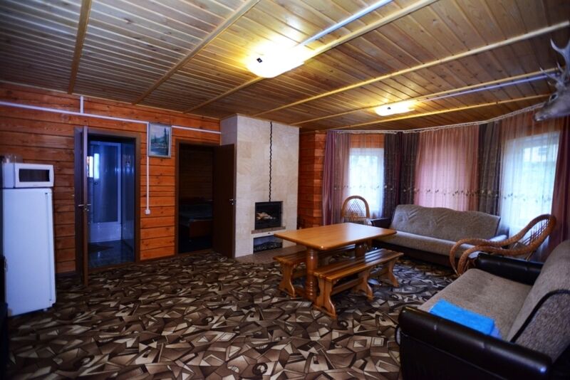 - Двухместный номер со спальней (2-спальная кровать), каминным залом (два двухместных дивана, стол, лавки, плетенные кресла-кровати), туалетной комнатой с душем.