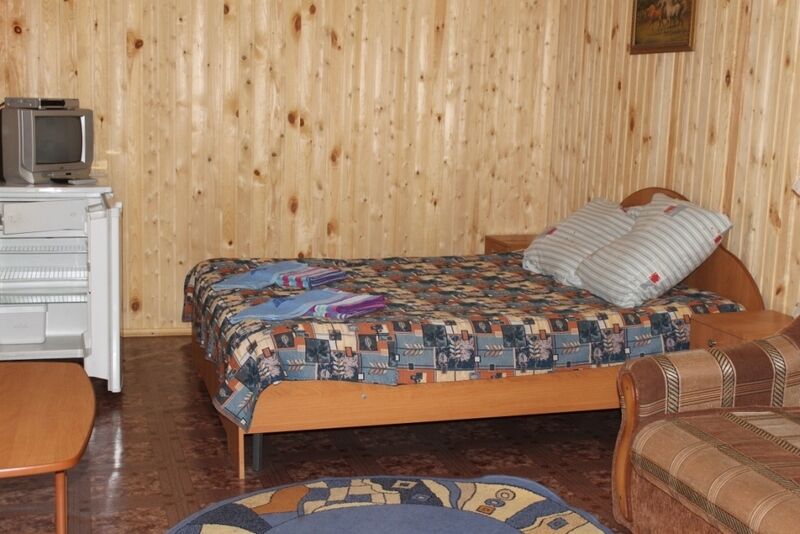 - Однокомнатный номер с 2-спальной кроватью, диваном, кухонной зоной (плита, посуда), туалетной комнатой с душем.