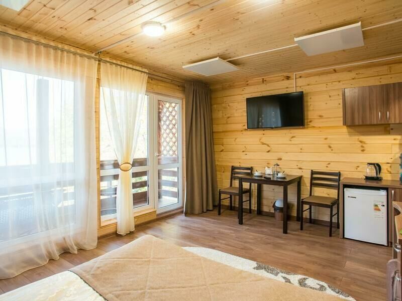 Гостям предоставляются шесть вариантов проживания: кедровый двухэтажный коттедж, VIP — домики улучшенной комфортности, благоустроенные отдельно стоящие домики, номера стандарт и одно- или двухкомнатные номера в отдельно стоящих корпусах. На базе также находится уютное кафе с панорамными окнами, из которых открывается потрясающий вид на озеро, и пантоцентр, предлагающий разнообразные услуги по оздоровлению, включая пантовые ванны и массажи.