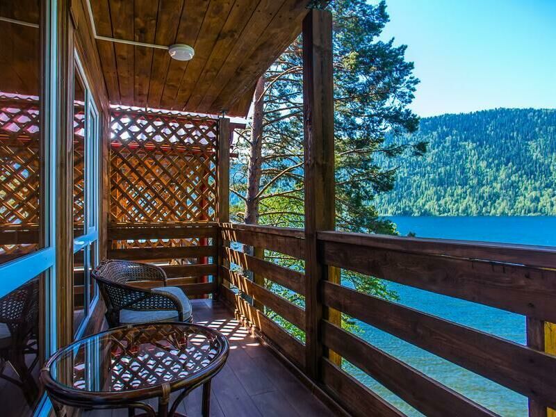Баня, расположенная на живописном берегу Телецкого озера, рассчитана на компанию от 3 до 4 человек. Особенность в том, что из парной вы можете буквально шагнуть прямиком в ласковые воды этого легендарного озера, испытав неповторимое ощущение единения с первозданной природой.