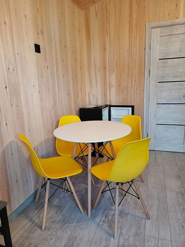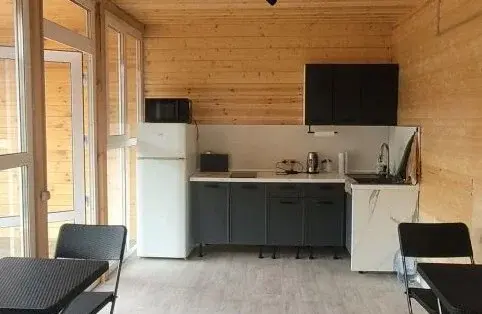 На территории оборудована просторная общая кухня, оснащенная современной бытовой техникой и удобной мебелью. Для любителей активного отдыха предусмотрены просторные беседки с мангалами и обеденной зоной. Особенностью базы является большой, тёплый летний бассейн, удобно расположенный возле открытой террасы с комфортабельными шезлонгами и зонтом. Вечером, после насыщенного дня, можно расслабиться в уютной зоне отдыха у костра.