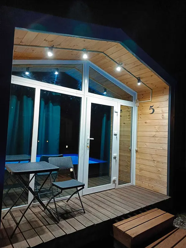 Уютный и современный домик, вместимостью 1-2 человека, общей площадью 18 кв.м., выполненный в стиле минимализма с элементами скандинавского дизайна. Дом идеально подходит для пар, которые ценят комфорт.