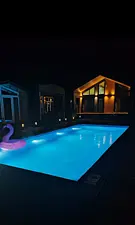 Читать полностьюБассейн с эффектной подсветкой. Удобно расположен возле большой открытой террасы с комфортабельными шезлонгами и зонтом. Идеально подходит для полноценного отдыха и освежающих купаний.
