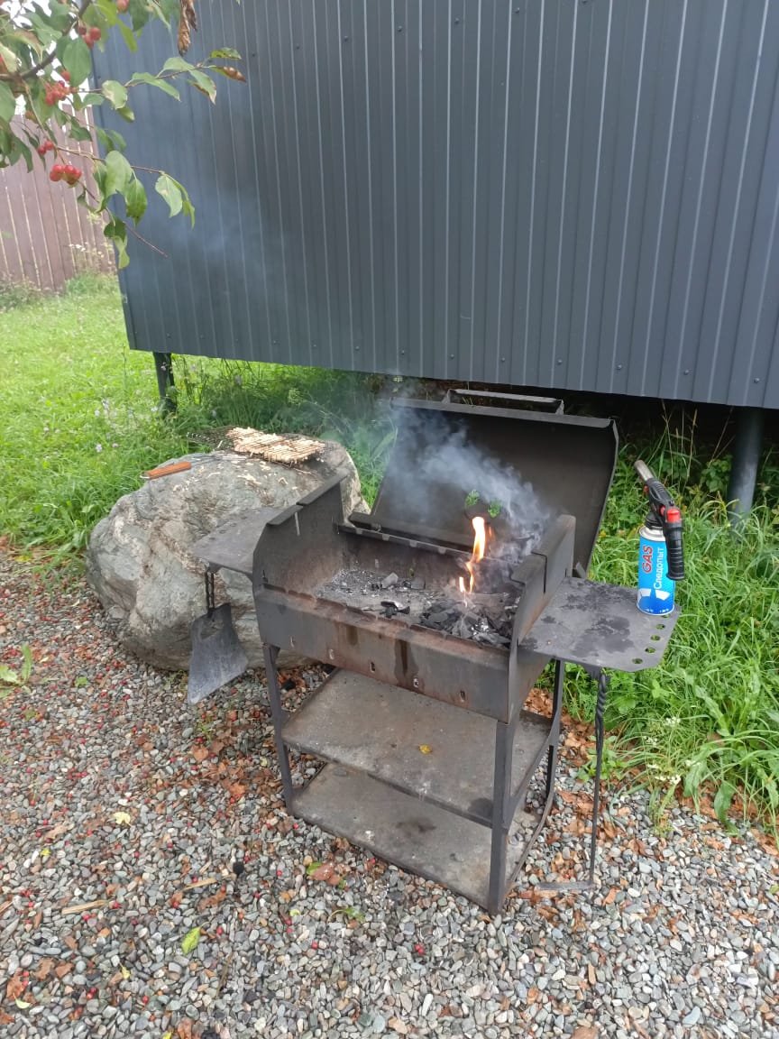 Также у каждого домика есть: терраса и на ней столик и стулья, мангальная зона, зона костровища с креслами-шезлонгами Кентукки.