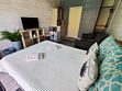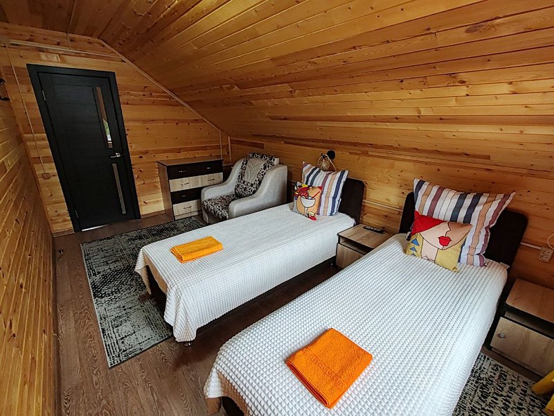 В номерах двуспальная кровать (постельное белье + полотенце), прикроватные тумбочки, комод, кресло кровать, телевизор и раскладной диван (доп. место), WI-FI.