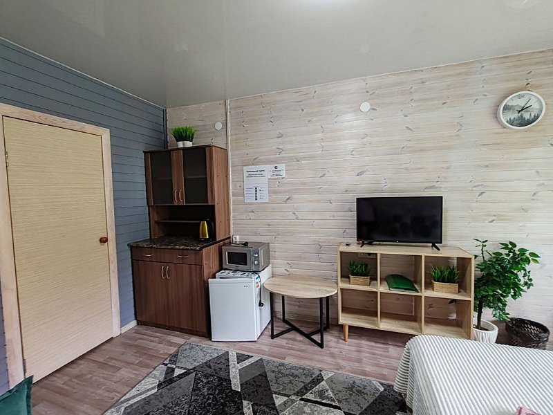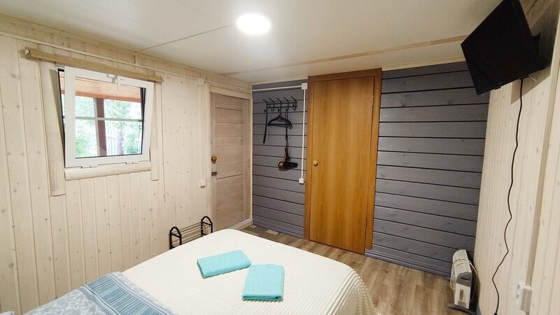 Небольшая терраса с мебелью и видом на горы. Двухспальная кровать (постельное белье + полотенце), WI-FI, прикроватная тумбочка, гардероб для одежды, телевизор, кухонный гарнитур, холодильник, СВЧ, мультиварка, эл.чайник, посуда, обогреватель в прохладные дни. Дополнительное место: раскладной мягкий диван (комплект постельного белья + полотенце). Санузел: холодная, горячая вода, раковина, унитаз, душ, зеркало, фен, жидкое мыло, шампунь, гель для душа.