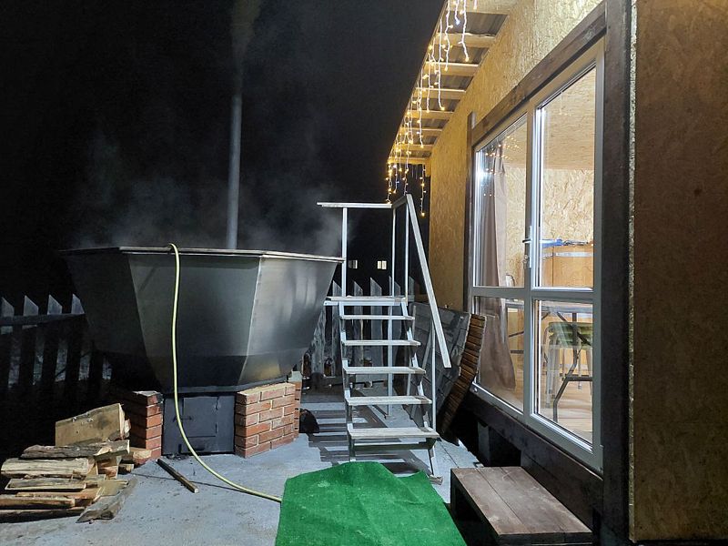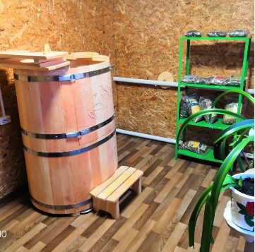 Читать полностьюБанный чан — это чан для парения на свежем воздухе. В этом и заключается основное отличие от традиционной бани: в процессе парения дышится свежим воздухом, а голова не нагревается. Жар распределяется снизу вверх, и именно такое парение считается полезным и правильным. Печь расположена под чаном. Банный чан с комфортом вмещает до 6 человек одновременно. Для придания аромата в процессе растопки в чан погружаются алтайские травы.