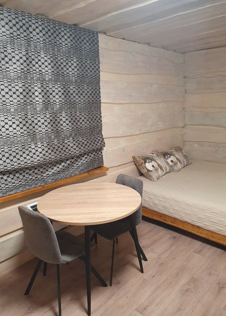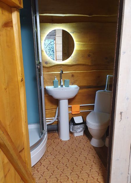 В доме комфортно разместятся до четырех человек (три двуспальных места) — каждая деталь продумана для вашего комфорта. Предоставляется мангал для барбекю и специальная сушилка для одежды с подогревом — ваши вещи всегда будут сухими и теплыми.