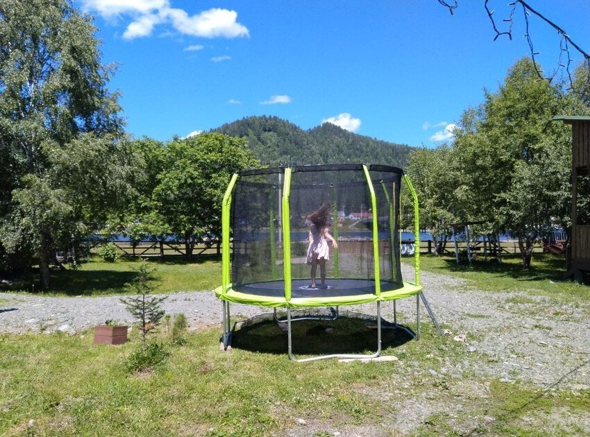 - батут и качели – идеальное развлечение для детей и взрослых;