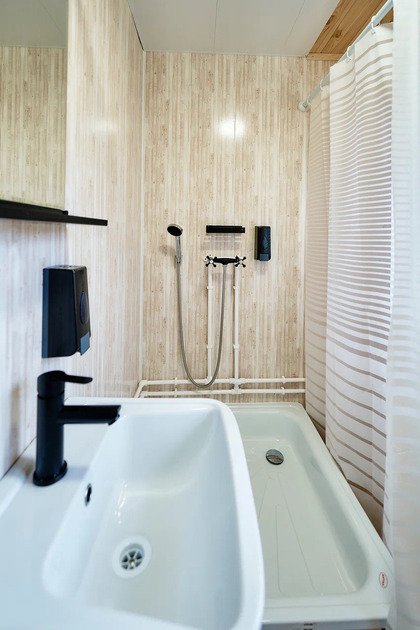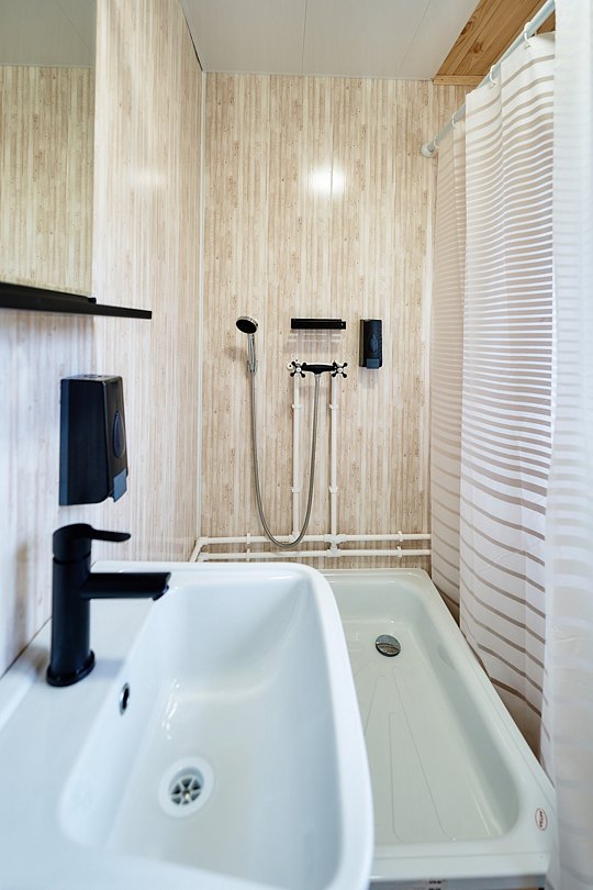 Здесь созданы все условия для комфортного проживания. В номерах удобные кровати, тумбочки и вешалки для размещения вещей. В сан.узлах каждого номера — душ, раковина, и унитаз. Для удобства гостей предусмотрены банные принадлежности, мыло, гель-шампунь, тапочки, фен (по запросу), полотенцесушители с подогревом, сушилки для обуви и белья. В холодное время года работает отопление.