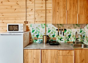 В гостиных есть все необходимое для самостоятельного приготовления пищи: холодильник, микроволновая печь, чайник, плитка и полный набор посуды.