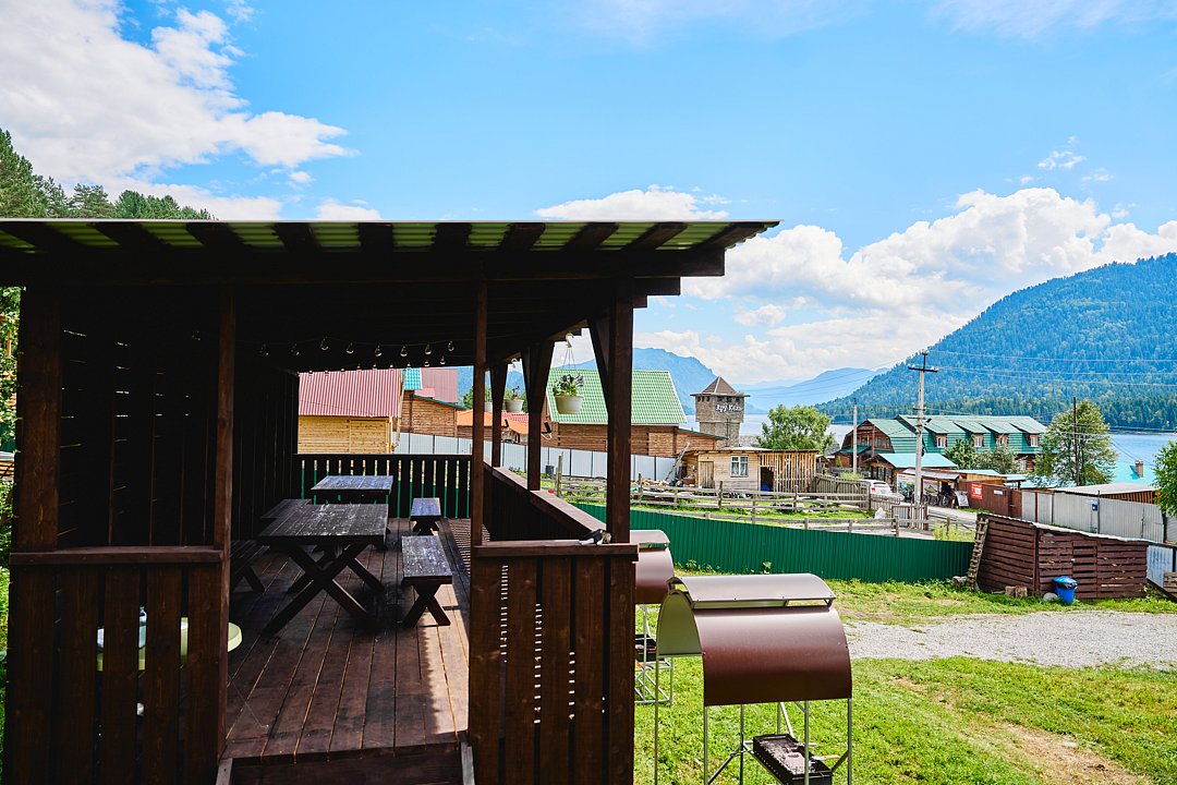 Гостевой двор на Телецком расположен в центре села Артыбаш, в 50 метрах от Телецкого озера и в шаговой доступности от основных туристических объектов. С балконов и из окон номеров открывается восхитительный вид на озеро, перевал Корбу, горы и мост реки Бия.