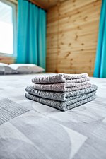 В номерах: удобные кровати, тумбочки и вешалки для размещения вещей. В сан.узлах каждого номера — душ, раковина, и унитаз. Для удобства гостей предусмотрены банные принадлежности, мыло, гель-шампунь, тапочки, фен (по запросу), полотенцесушители с подогревом, сушилки для обуви и белья. В холодное время года работает отопление.