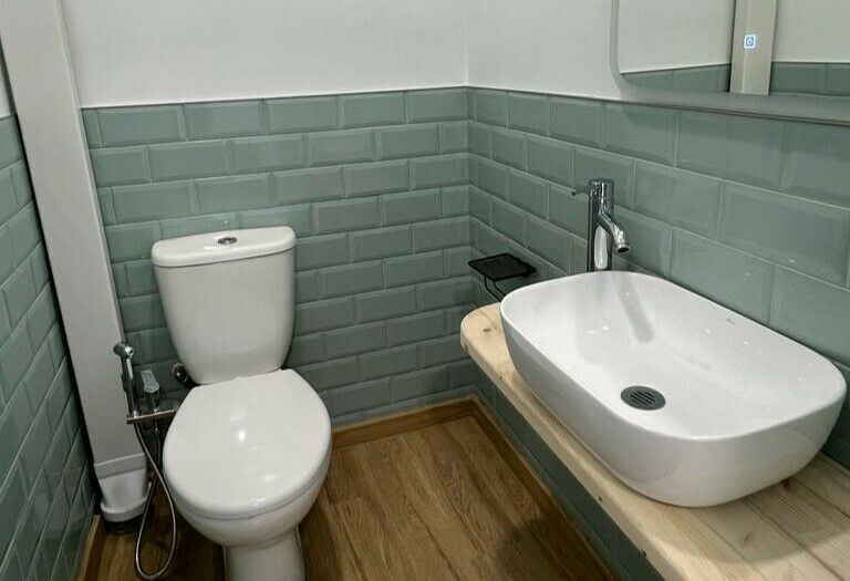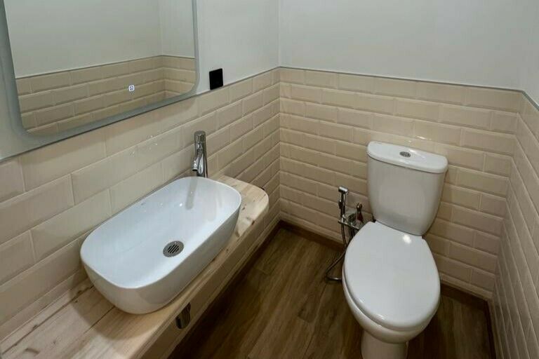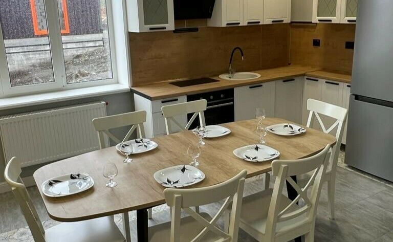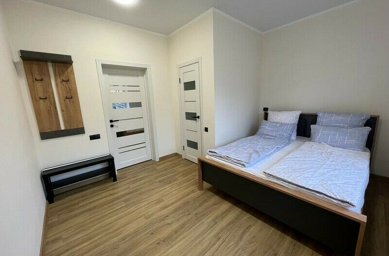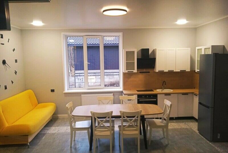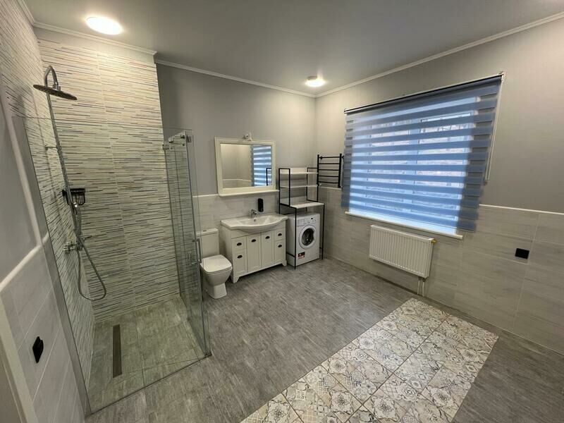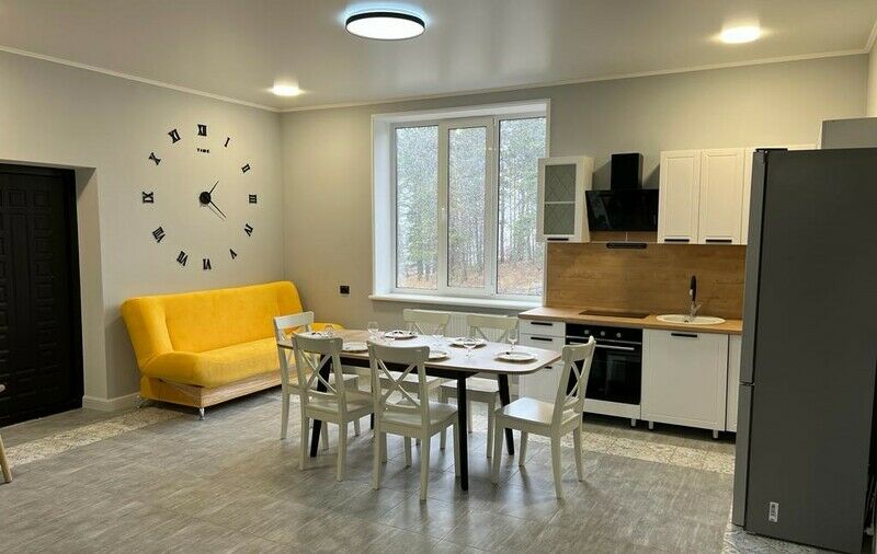 Гостевой дом представляет собой двухэтажный коттедж, оснащенный всем необходимым для комфортного и качественного размещения. В доме 5 уютных спальных комнат с двухместными кроватями, 3 туалета и 2 душевые, большой холл с кухней, оборудованной варочной панелью, духовкой, микроволновой печью. На территории предусмотрена мангальная зона с лавочками и качелей. Есть баня с летним уличным каркасным подогреваемым бассейном, установленным на террасе.