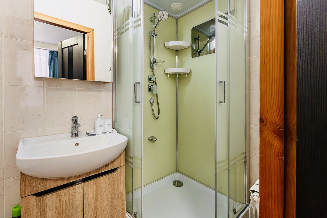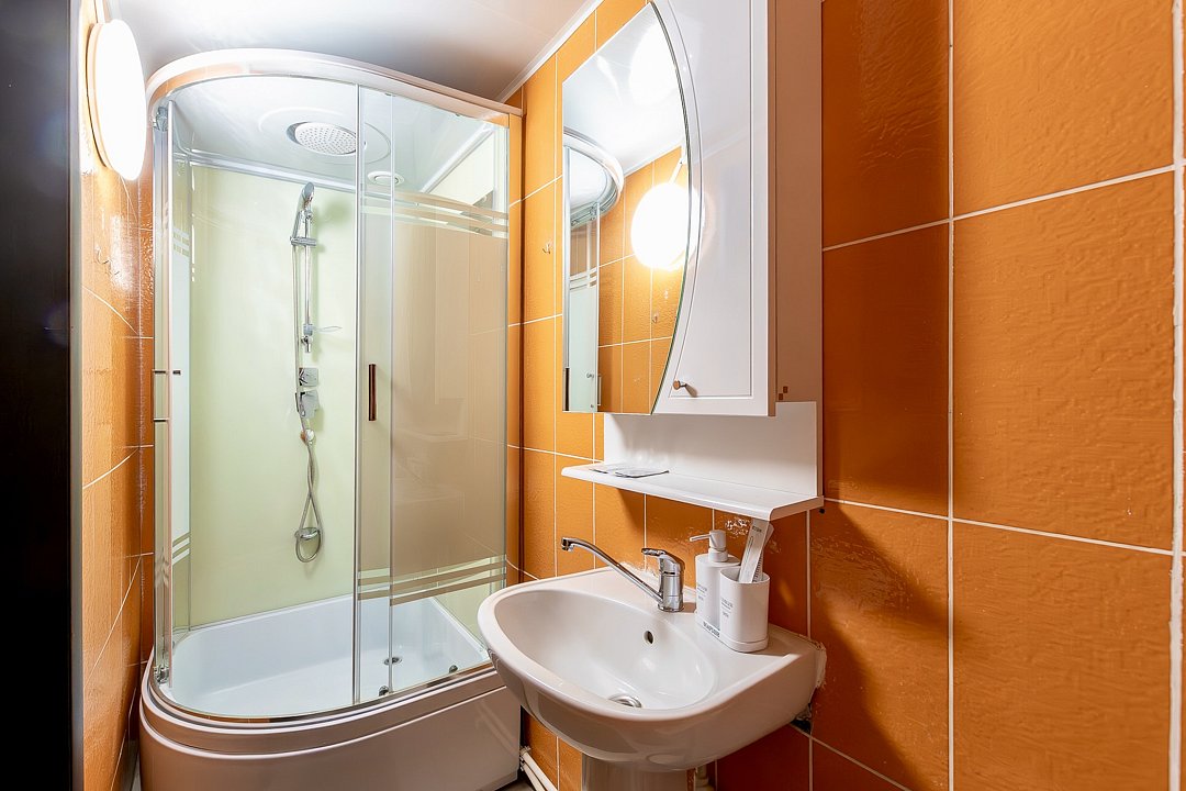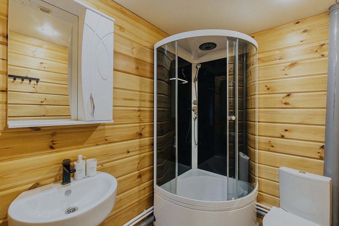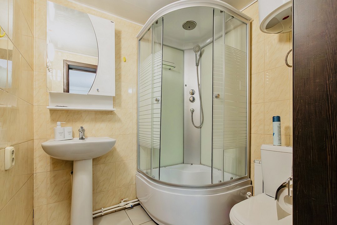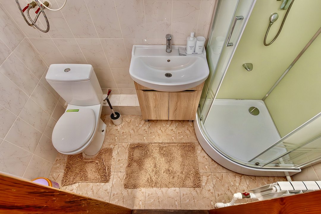 – Собственный санузел с душем, средства гигиены включены (шампунь, мыло, зубные щётки).