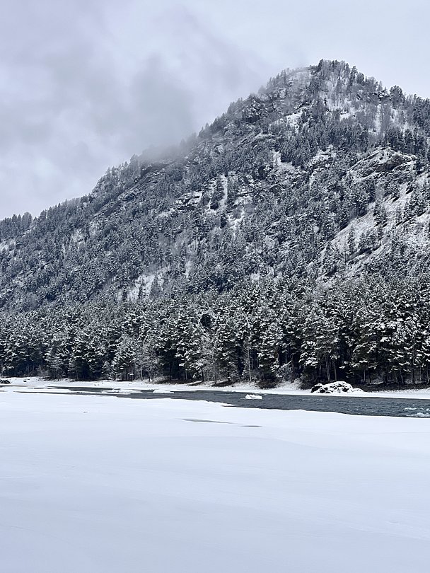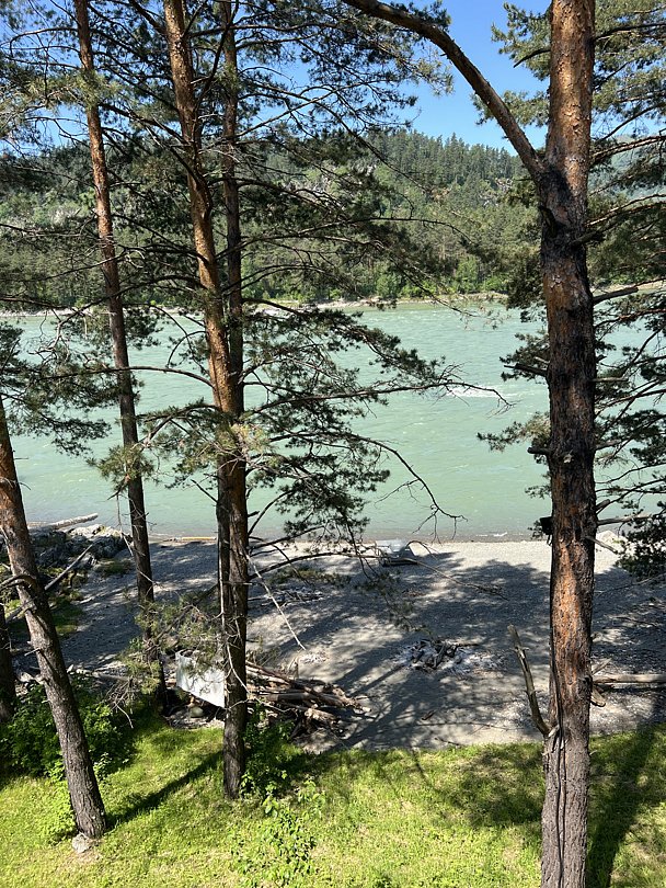 Сосновый лес — Смотровая площадка — Горная речка. Заезд в поселок Озерное. Виды на реку Катунь. Маршрут проходит как по дорогам, так и по бездорожью,
