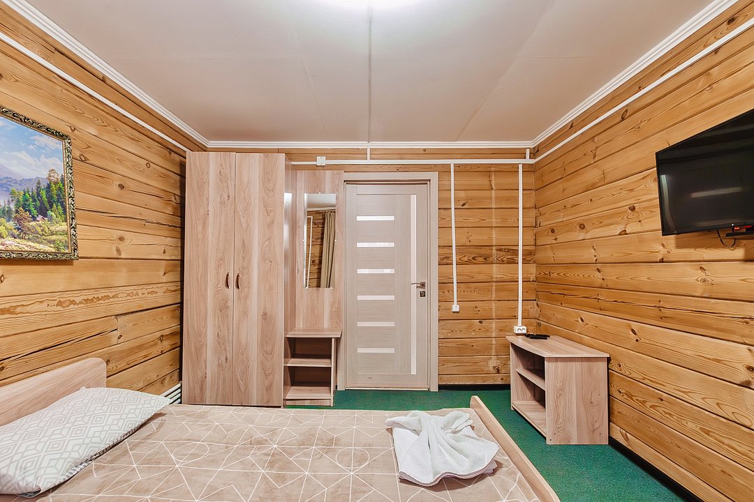 Номера категории «Стандарт двуместный (дом Катунь)» находятся на втором этаже. Номера очень уютные и тёплые.