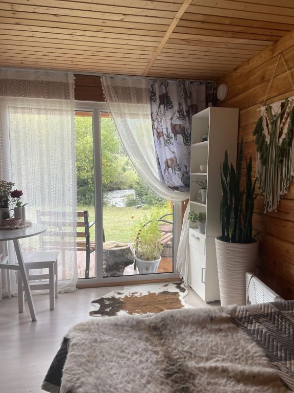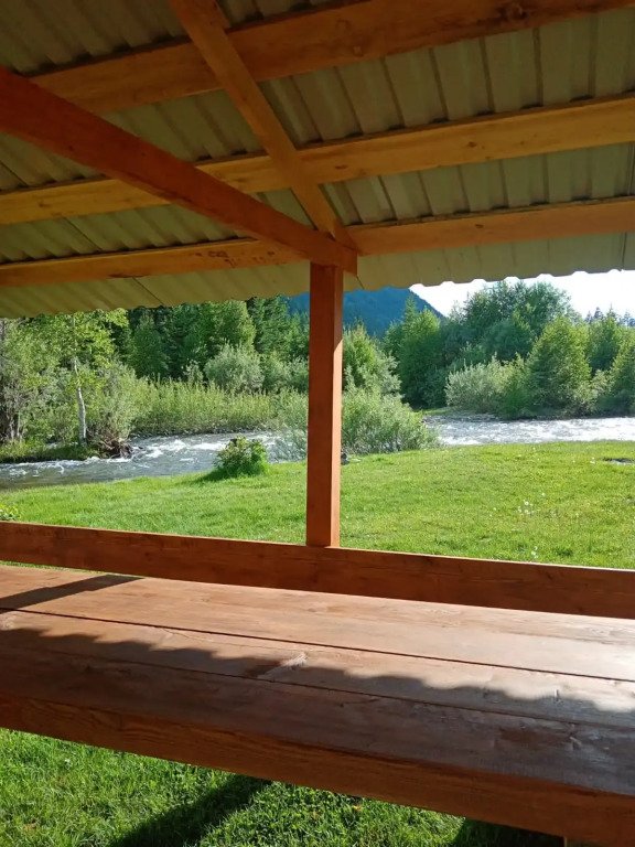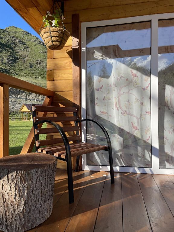 Есть возможность проживания в трёхместных домах. Каждый домик находится на берегу горной реки у лесного массива с видом на горы. Домики удалены друг от друга, есть отдельные беседки и мангальные зоны. Электричество поступает от солнечных панелей. В домике номер 3 присутствует мини-камин, а в остальных двух обогреватель. Все домики имеют панорамный вид, внутри 2 кровати: односпальная и двуспальная.