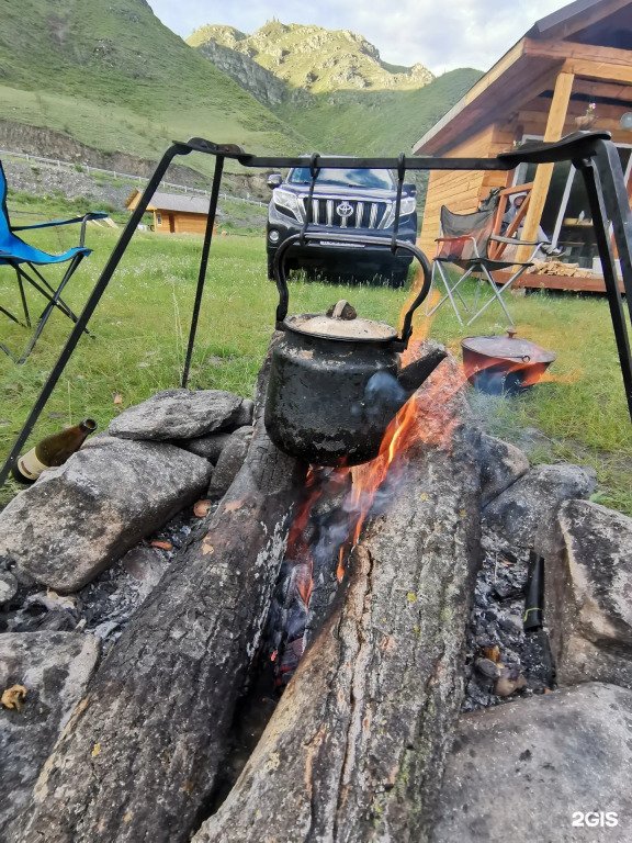 Для удобства гостей на территории предусмотрены дополнительные услуги: ровные зоны для размещения палаток, места для костра, чистая вода для бытовых нужд, парковка рядом с домиком и беседкой. Есть панорамная фотозона с вершины горы.