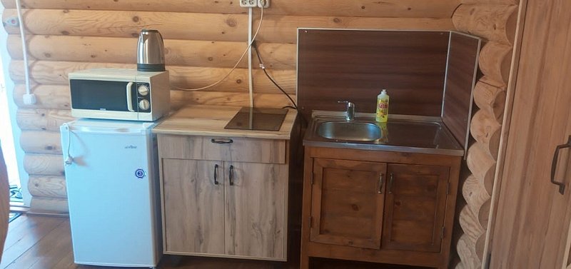 - Полностью оборудованная кухня с электрической плитой, холодильником, чайником, набором посуды и микроволновой печью — готовьте любимые блюда!