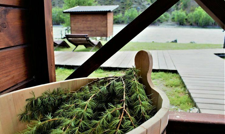 В банном комплексе гостей ждут горячая баня, беседка, купель, сибирский банный чан и сенный домик. Отдыхающие могут заказать услуги парильщика и массаж. Также на территории работает открытый бассейн.