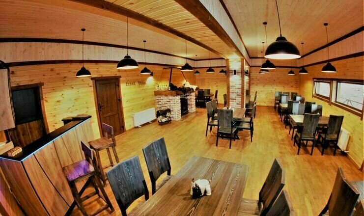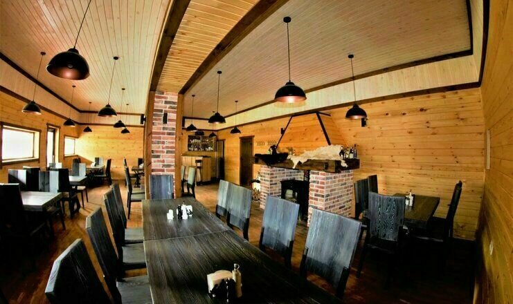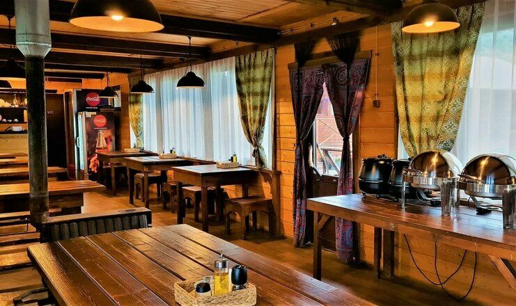 На территории комплекса работает ресторан. В меню – блюда русской кухни и разные виды мяса, приготовленные на огне. В меню используются продукты, выращенные на базе, а также собранные местные ягоды. В ресторане проводятся дегустации, которые провести уже на следующий день по приезду.