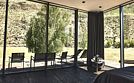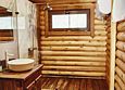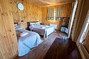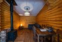 Двухкомнатный семейный коттедж из бруса с панорамными окнами и большой террасой. В одной комнате большая двуспальная кровать, в другой - камин и раcкладной двухместный диван. Один санузел. Комнаты не разделены дверьми.