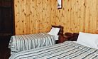 Четыре кровати обеденный стол, лавки, набор посуды, казан, чайник для приготовления пищи на костре, электричество (свет, розетки), умывальник.