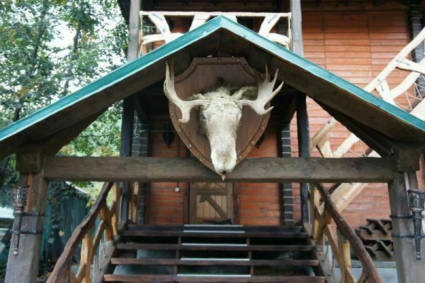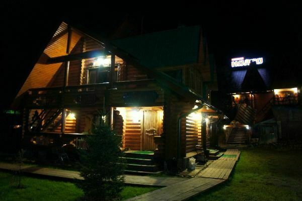 На базе построена баня из осины с бассейном и комнатой отдыха с камином, с большой летней верандой и бильярдом.