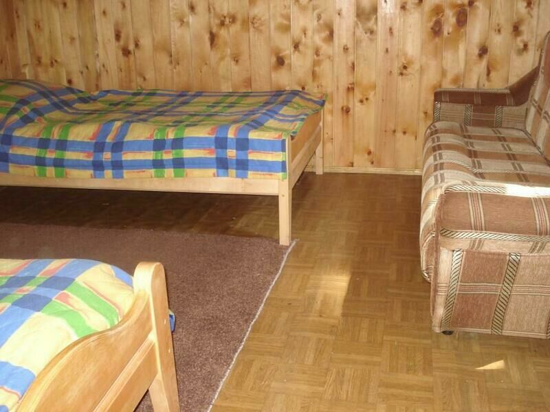 - Однокомнатный номер с двумя 1-спальными кроватями или одной 1,5-спальной и 1-спальной кроватями , столом, вешалкой;