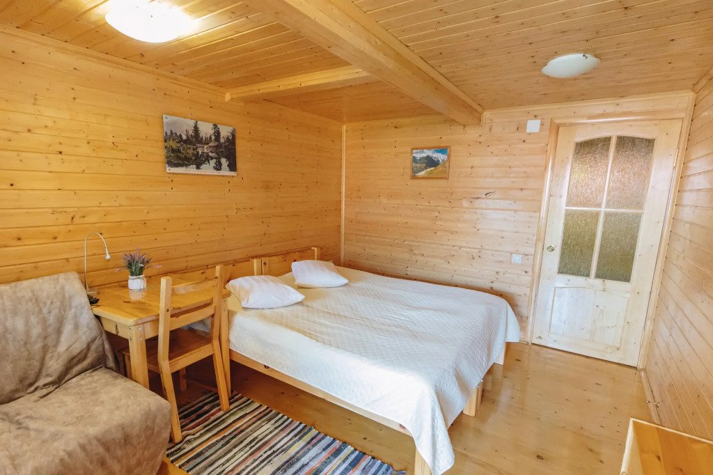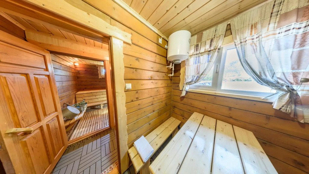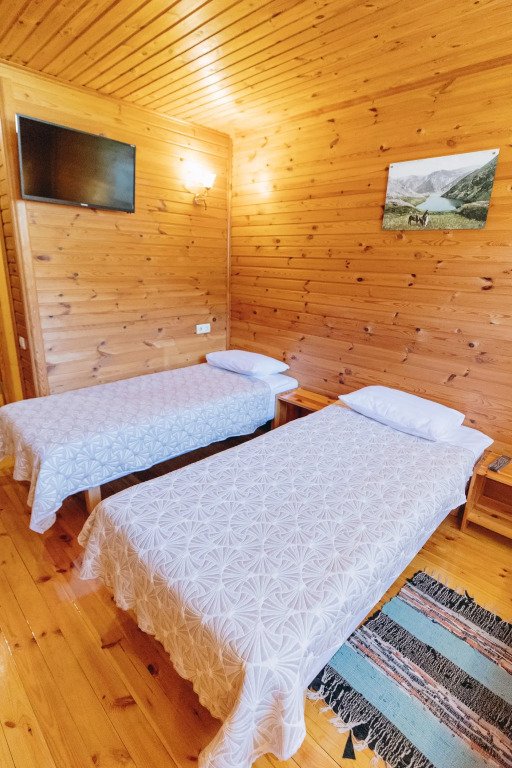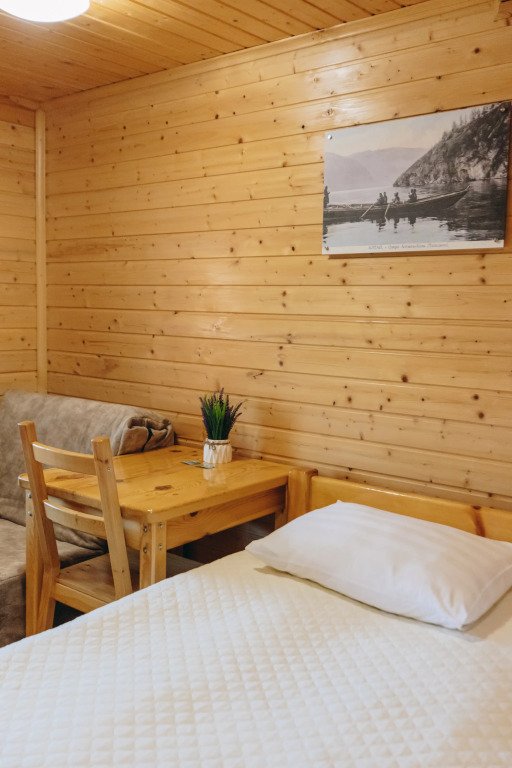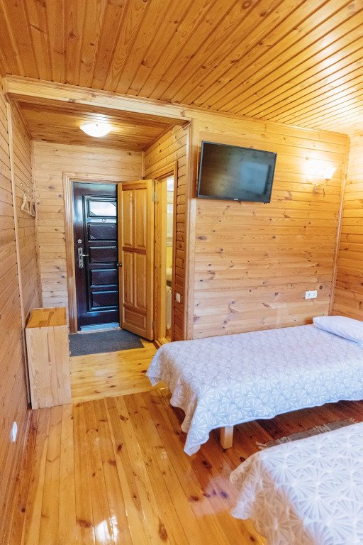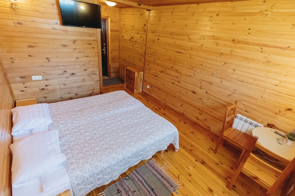 Все номера отделаны натуральным деревом и оснащены обогревателями конверторного типа. На всей территории работает интернет, что удобно для тех, кто совмещает отдых и работу.