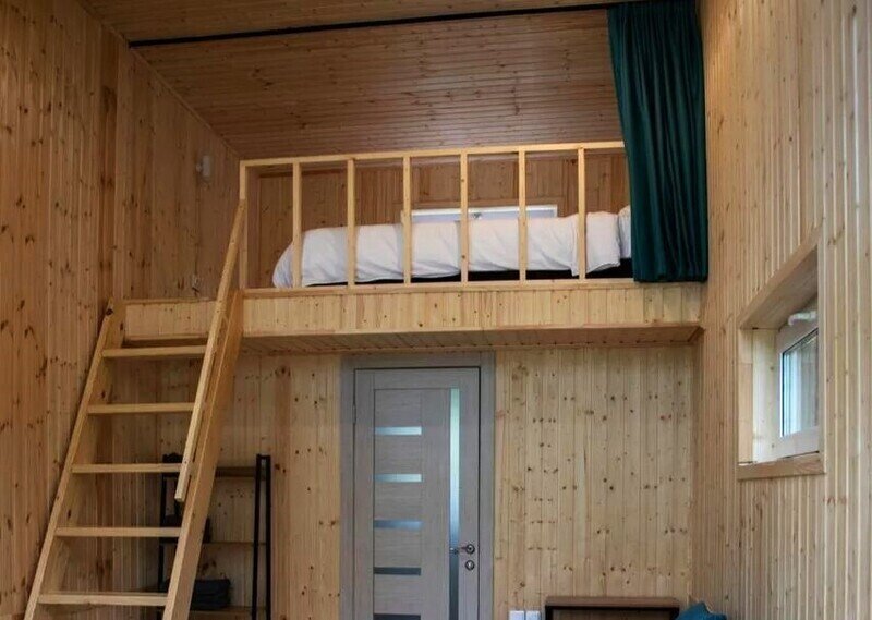 Двухместный коттедж Мансарда с красивым видом из окна двуспальная кровать