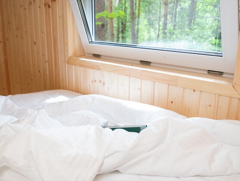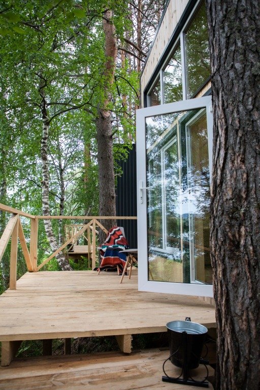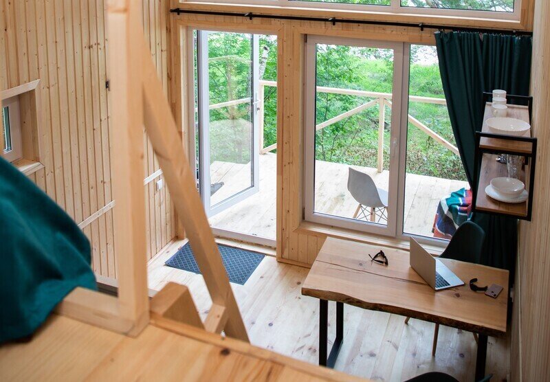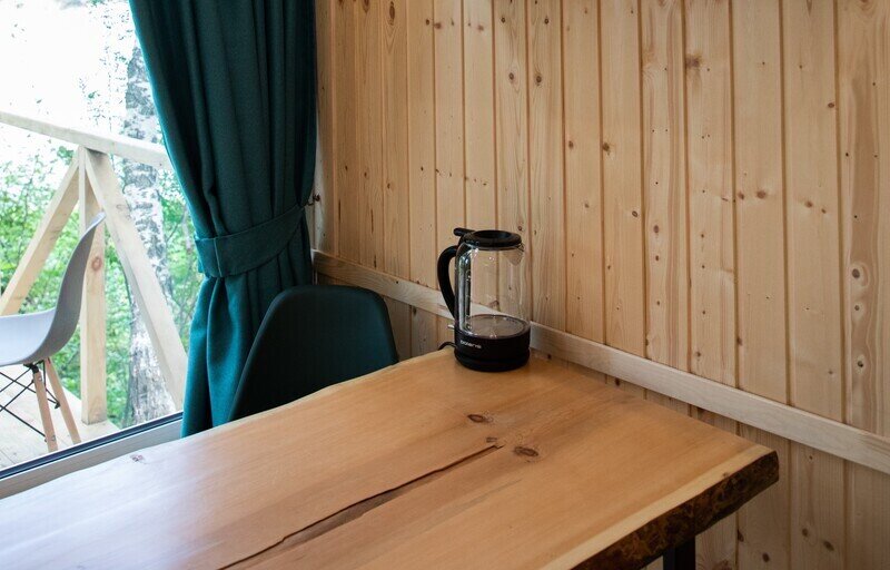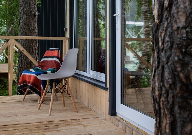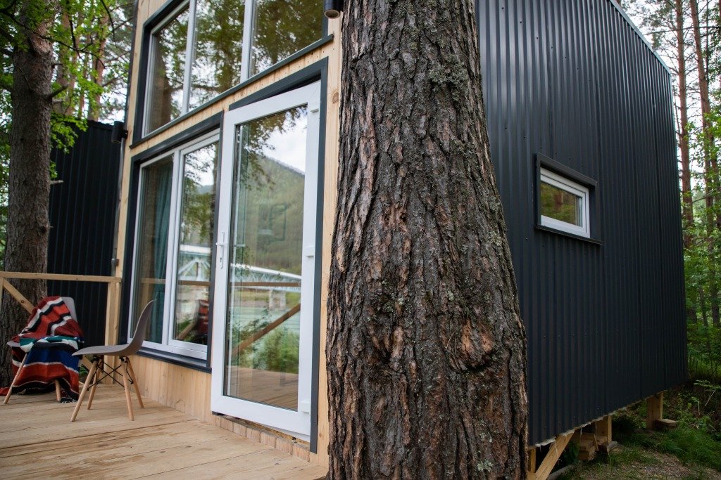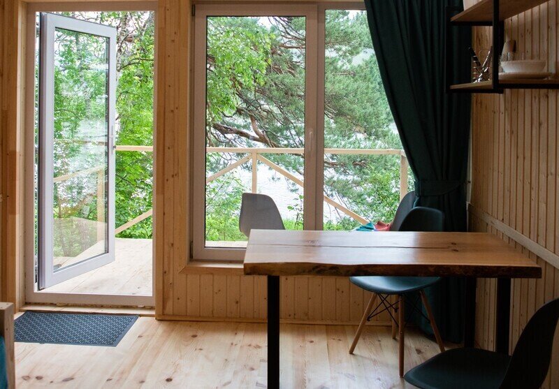 Глэмпинг «Камышла», укрытый сосновым лесом, предлагает комфортабельные дома с потрясающим видом на речную гладь.