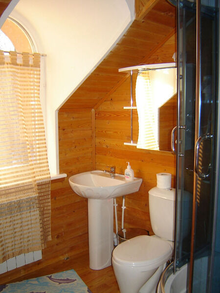 - На каждом этаже имеется санузел с горячей и холодной водой, душевая кабина, на втором этаже — два санузла.