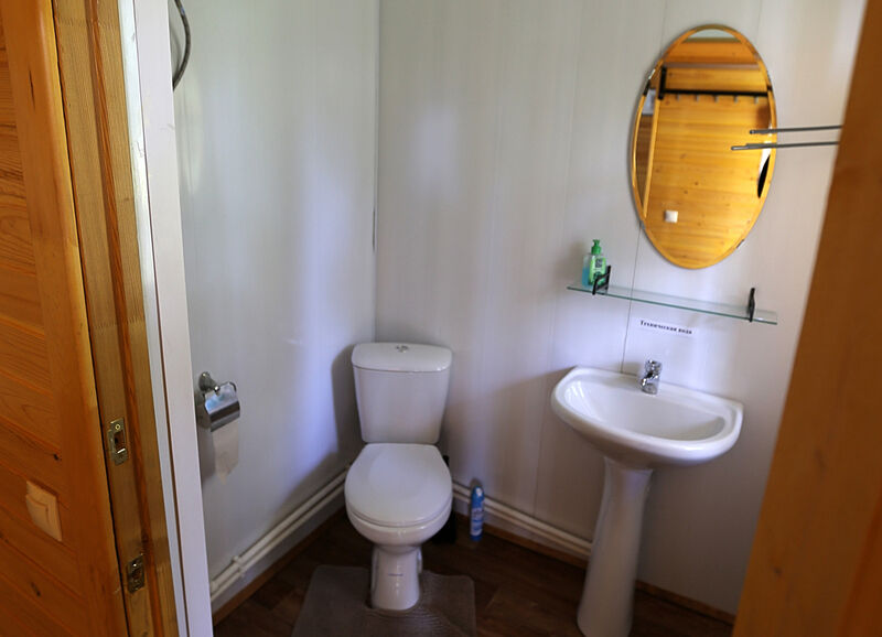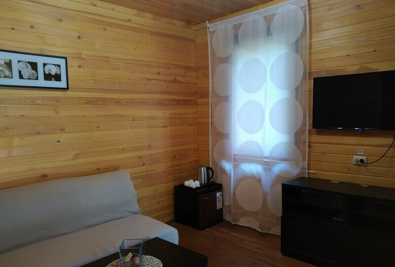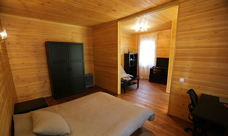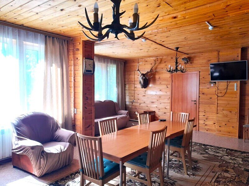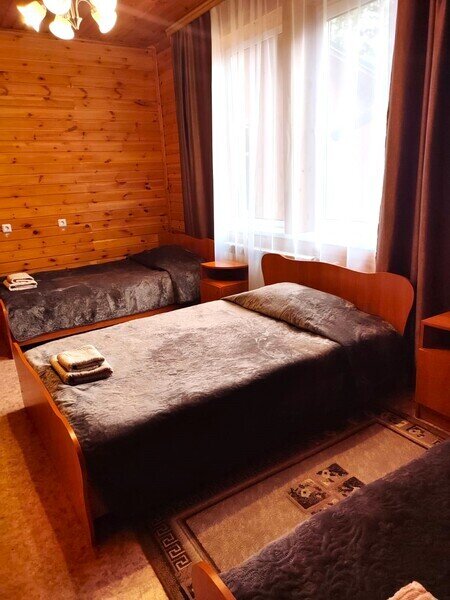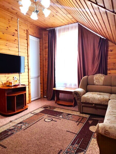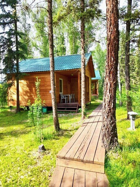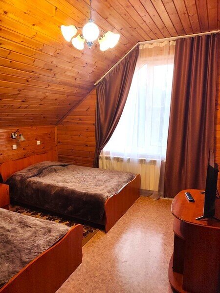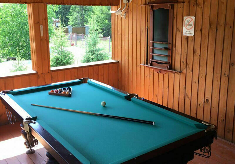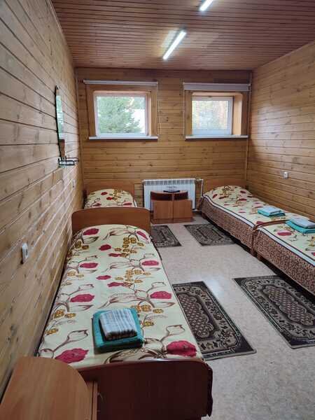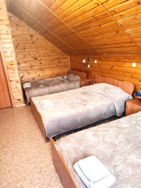 Гости туркомплекса могут с комфортом разместиться в уютных номерах в двухэтажном круглогодичном коттедже, на первом этаже которого есть большой зал с обеденным столом, зона отдыха с мягкой мебелью и телевизором, оборудованная кухня для самостоятельного приготовления пищи. В цокольном этаже коттеджа имеется эконом вариант проживания в номерах для 2-4х человек с туалетом и душем на этаже.