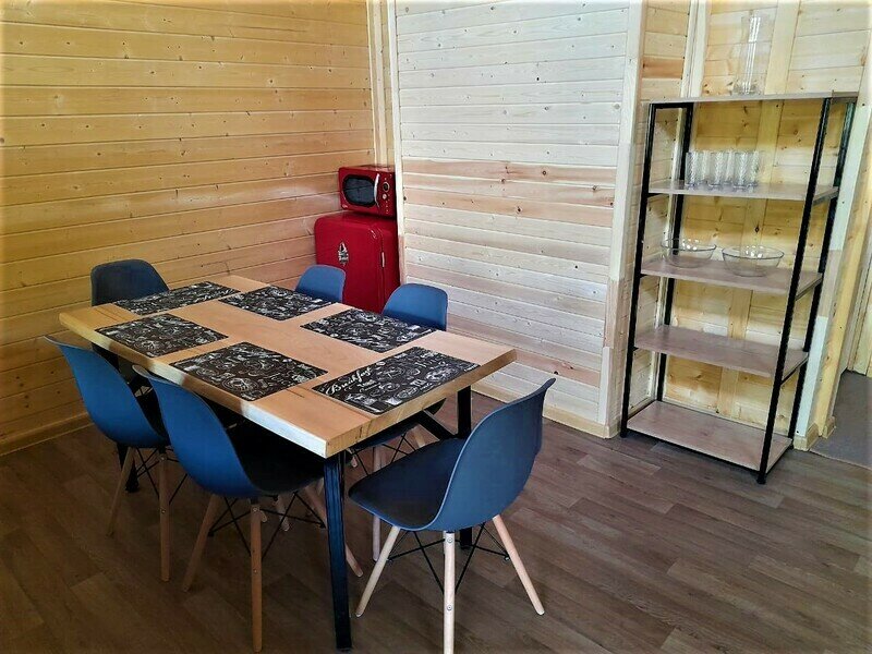 Для большой дружной семьи или компании могут подойти новые 6-местные модульные домики. В домиках 3 комнаты: кухня – гостиная со всей необходимой техникой и посудой, диваном евро-книжкой и телевизором, 2 спальни с двумя односпальными и одной большой кроватью, санузел со всеми удобствами. Есть веранда с видом на горы для приятных посиделок на свежем воздухе.