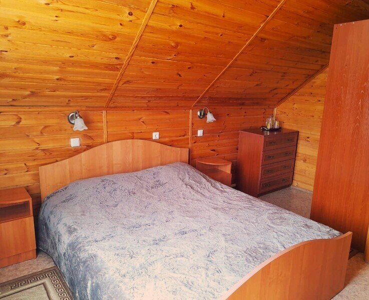 Большой двухэтажный коттедж с номерами класса эконом, стандарт, полулюкс и люкс, основных спальных мест -14 (6 номеров), остальные места-диваны и раскладушки. Идеально подойдет для отдыха большой компании друзей или коллег. Внутри комнаты с раздельными и двуспальными кроватями. Ванные комнаты с душевыми кабинами и вся необходимая мебель и техника.