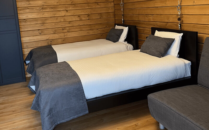 В каждой из 5 спален – 2 спальных места и 2 дополнительных. На кроватях – ортопедические матрасы и подушки. В каждой комнате – кондиционер и ТВ. Организован доступ к беспроводному интернету Wi-Fi, ТВ в гостиной – с голосовым управлением, акустической системой и караоке. Для любителей игр есть приставка Sony PlayStation 4.