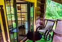 Небольшой отдельностоящий домик на двух человек. Внутри есть все необходимое для комфортного отдыха: двухместная кровать, санузел с душем, ТВ, холодильник, а также собственная веранда.