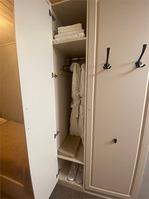 Номер в доме с тремя комнатами и общей зоной отдыха: тут есть холодильник, ТВ, чайник и посуда для перекуса. В каждом номере — две раздельные кровати или одна двуспальная (на выбор), санузел с душем и гигиенический набор.
