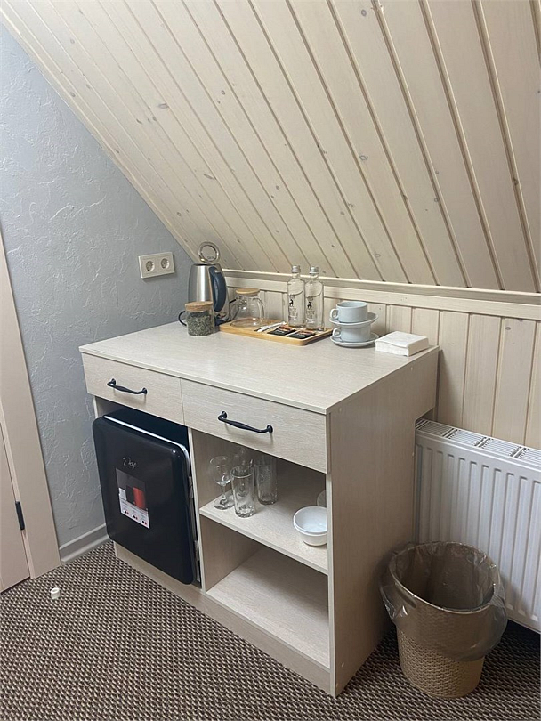 Обновленный номер на втором этаже с небольшой кухней: холодильник, чайник и посуда — всё под рукой. Номер с двумя раздельными кроватями, находится на втором этаже.