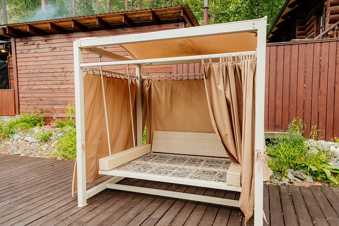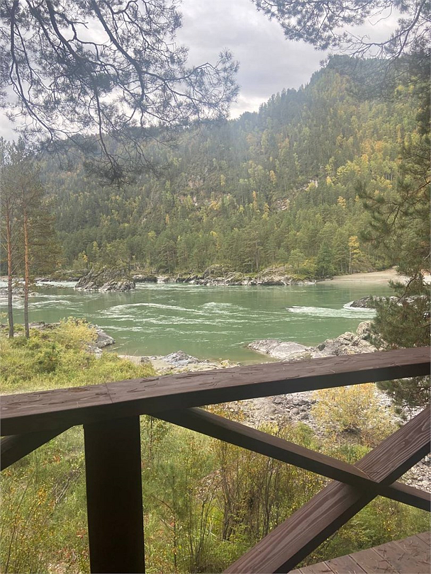 Путешествие с семьейЗнакомство с Республикой АлтайОстанавливались на одну ночь. Приехали уставшие, после экскурсии по жаре и отличным бонусом стал шикарный бассейн с видом на Катунь. Отличный отель - база отдыха на берегу Катуни. Весь в зелени, сосны, кедры, есть бани и ресторан. Хорошие завтраки. Домики чистые со всеми удобствами и всем необходимым для отдыха. Вид с террасы дома на реку просто завораживающий. Очень приятный персонал, встретили, всё рассказали, показали. Спасибо за отдых!